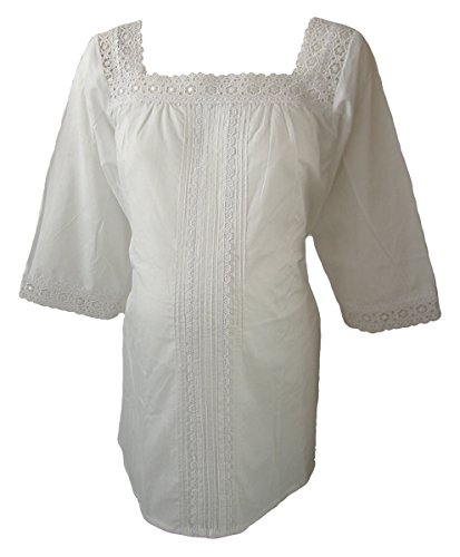 Nokweeman レディーズ Bohemian Lace マタニティ シャツ ブラウス (XS, 白 White)