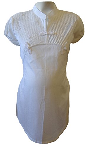 Nokweeman レディーズ Chinese Style マタニティ シャツ ブラウス (M, 白 White)