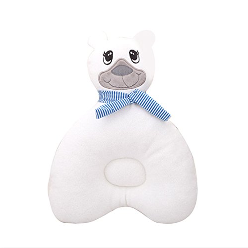 Noloo 赤ちゃん枕 絶壁防止枕 新生児用の枕 男女兼用 ベビーピロ 汗取り 通気性良好 白い熊