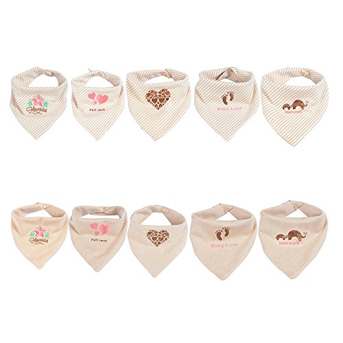 Noloo よだれかけ 子供 三角型 バンダナ 肌に優しい サイズ調整可能 ベビー 赤ちゃん 男の子 女の子 かわいいデザイン 柔らかくて軽量 (2つのスタイル各5つ柄)