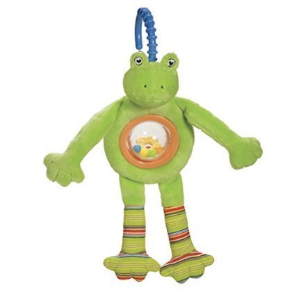 Frog Ball Rattle is made of soft velour and stripe jersey knit and features engaging tactile elements for baby to explore. This interactive toy has ball rattle and crinkle arms. Sturdy c ring attaches easily to stroller, car seat, or baby bag for handy fun on the go. Baby safe and machine washable.