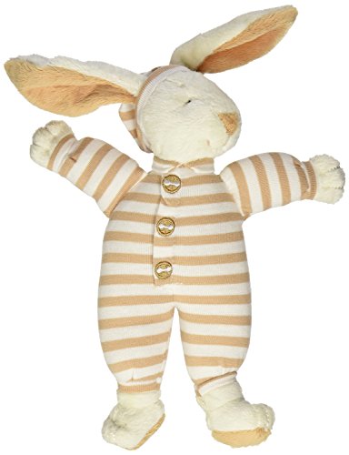 Color:Natural Soft velvety velour bunny with stitched eyes and irresistibly long ears wears signature stripe jersey knit union suit with matching cap. Machine washable.
