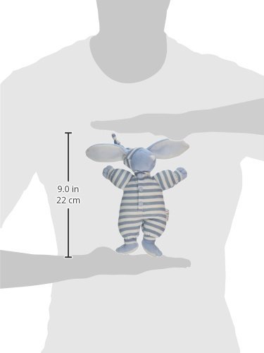 Soft velvety velour bunny with stitched eyes and irresistibly long ears wears signature stripe jersey knit union suit with matching cap. Machine washable.