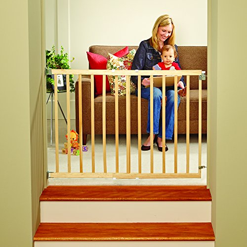 Adjusts to fit openings 28 to 42 inches wide and is 30 inches high;Ideal for top of stairs, bottom of stairs or between rooms;Hardware mounts, removes easily when not in use;Safety latch offers easy one-hand operation;Proudly made in the U.S.A.