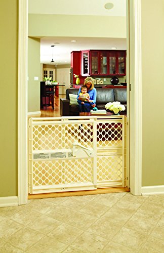 Color:Ivory Product Description North States Supergate Ergo Pressure or Hardware Mount Plastic Gate, Ivory from North States From the Manufacturer Keep children safe with the Super gate Ergo. Gate safely contains children and pets in a variety of settings. Designed with this in mind, the North States Super gate Ergo provides secure, effective protection that is ideal for families with multi-story houses. This versatile gate is designed to securely barricade doorways, stairways, and other hard-to-block spaces. This gate offer 5 mounting options for versatility. Right out of the box, the Super gate Ergo can be used as a quick and easy pressure mount gate no measuring, hardware, or tools required. Simply expand the gate in the opening and lock the handle. Well-suited to blocking doorways, the gate includes proprietary door sockets that provide extra holding power for pressure mounting it in openings between 26' and 42' wide. Also perfect for barricading hard-to-block spaces, the gate includes rail sockets that let you mount it between two railings or between a railing and a wall. The gate can also be used as a hardware-mounted swing gate, perfect for highly used areas such as the kitchen and living room. With the gate's smooth, rounded edges, opening and closing it is quick, easy, and pinch-free. Finally, unlike some other gates on the market, the Super gate Ergo is certified for mounting at the top of a stairway and includes the necessary hardware to do so.
