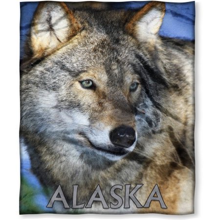 Cheque out the amazing wolf Alaska is known for on this "Polite Smile" Silk Touch Throw by The Northwest Company.This intriguing, daring and fun 130cm by 150cm throw is made out of a material that feels like silk to the touch! This throw is decorated with a bold and lively design featuring a grey wolf with greenish-blue eyes and "ALASKA" across the bottom of the throw.This amazingly soft, warm and vibrant throw will instantly become a favourite to cuddle with while watching TV.Use this 100 percent polyester throw blanket in the bedroom or on the couch.This silk touch throw is machine washable.