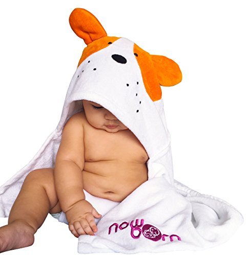 Baby Hooded Bath Towel - Cute Orange Puppy Dog Animal Design - Organic Cotton Material by Now Born