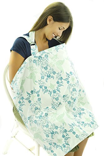 Nursing Cover - Breathable Cotton Breastfeeding Apron - Blue Green Floral Design - Baby Feeding by Now Born