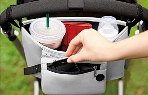Nowest (ノウェスト) ベビーカー ドリンクホルダー 多機能小物入れ 取り外し可能ポーチ付き (グレー)