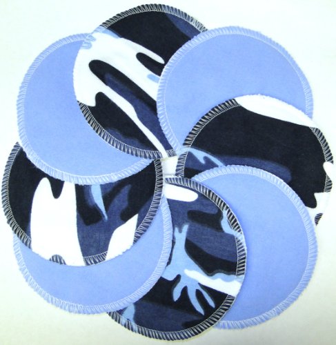 5 Layers of Extra Soft, Absorbent 100% Cotton;Machine Washable;Approximately 4 1/2 in Diameter;Naturally Conforms for a Comfortable Fit;8 Pads Per Set - 4 Blue / 4 Blue Camo