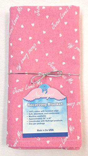 - NuAngel Flannel Receiving Blanket - Bubblegum Pink Jesus Loves Me Print
