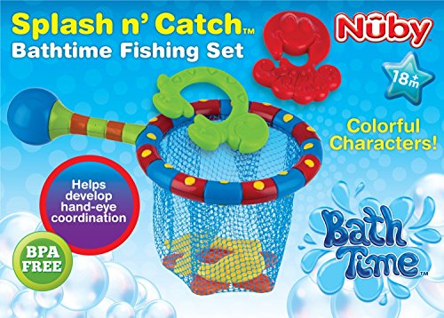 The Nuby Splash 'n Catch bathtime fishing set teaches coordination, development and enjoyment. This toy is designed with your baby in mind. This product exceeds all government safety regulations and standards.