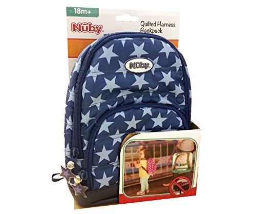 Nuby 2 in 1 Quilted Harness Backpack, Navy Stars, Child Leash, Baby Walking Safety Harness, Kid Backpack with Tether, Toddler Travel, Wrist Leash [並行輸入品]