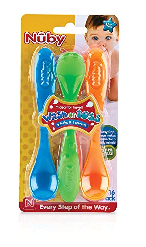 Nuby 16 Piece Wash or Toss Toddler Feeding Fork and Spoon Set [並行輸入品]