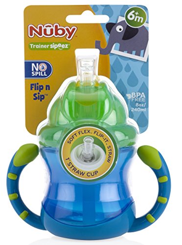 Nuby ツインハンドル・フリップイットマグ 240ml (イエロー・ブルー・レッドのうち1色。色はおまかせ。)