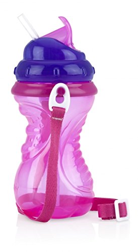 Nuby ストラップ付ストローボトル 420ml/ピンク【水筒】【マグ】【ボトル】FDNB1014903