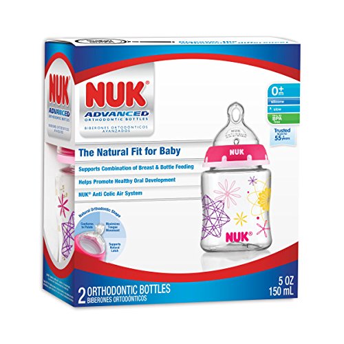 NUK Advanced Orthodontic Bottles with Silicone Nipple, Pink, 10 Ounce, 2-Count 哺乳瓶 280ml 2本セット ピンク