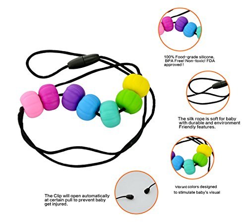 More Fetures: ★ Absolute food grade silicone beads, similar to pacifiers and nipples. FDA approved ! ★ Colorful pumpkin shape as a stylish necklace for mom and as a teether toy for baby. ★ 14" length with a beakaway clasp can be easily adjusted if it's longer to you. ★ Unlike teething toys and freezable teether rings, silicone teething necklaces aren't easily dropped. ★ Silky-smooth cord is strong, and won't pull your hair unlike the gold necklace or other metal jewelry. ★ Stimulates sensory development, Cures teething pain and drooling. ★ Easily cleaned with dish soap ans water, also dishwasher safe. ★ Silicone necklace is a great sensory tool to help babies focus while nursing. Package Contents: * 1 x Silicone Teething Necklace Welcome to our store, may you have a pleasant shopping experience! Our products have been well tested, examined and packaged before sending off. Any problem please feel free to contact us first so that we can supply the best service for you.?