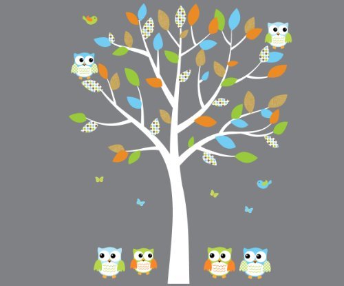 Childrens壁デカール、ホワイトツリー壁デカール、フクロウ壁デカール、フクロウステッカー Full Decal: Small Vinyl Tree オレンジ 6FATOWLS_SmallTree_Vinyl_blueorange