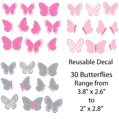 Pink and Gray Butterfly Decals for Kids Room, 30 Butterflies by Nursery Decals and More