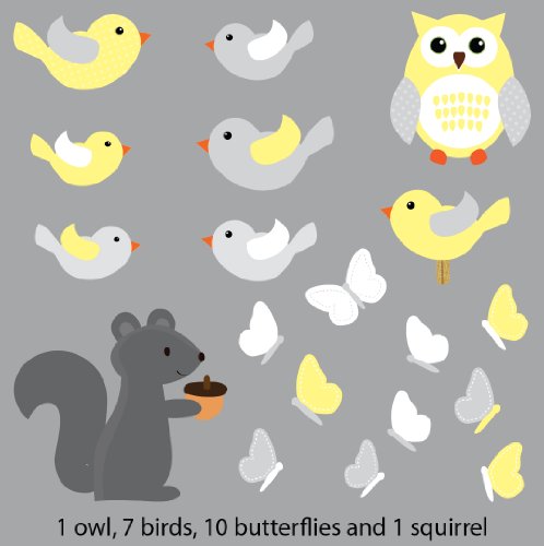 ファブリック壁デカール、花デカールfor Nursery Set 3 イエロー SquirrelBirds_Yellow_c78c02c80c91_
