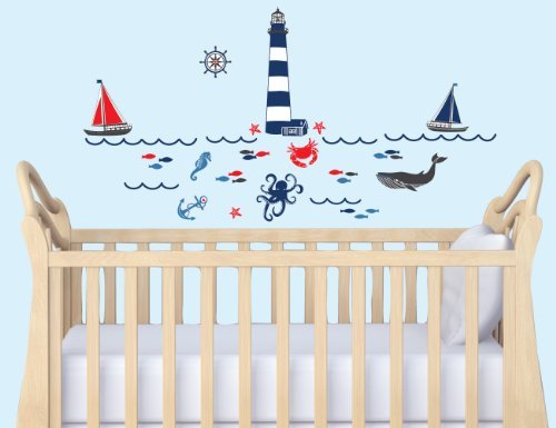 Mini Red, Navy and Gray Nautical Decal for Nursery by Nursery Decals and More