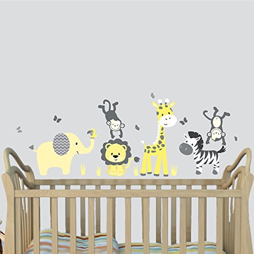Mini Yellow Gray, Jungle Animal Wall Decals, Jungle Stickers for Baby Rooms by Nursery Decals and More