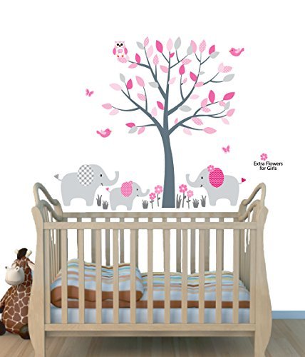 Fabric Wall Decals, Animal Decal, Elephant Tree Decal, Pink and Gray by Nursery Decals and More