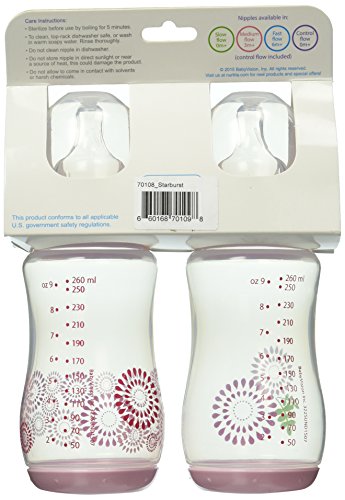- Nurtria 2 Piece Classic Wide Neck Bottle, Pink Starburst, 9 Ounce