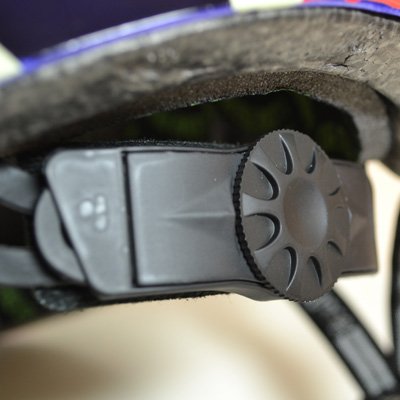 - ヘルメットのサイズを簡単に調節できるスピンダイヤル付き。