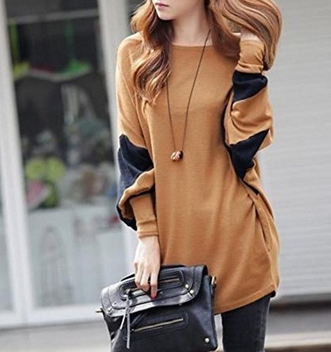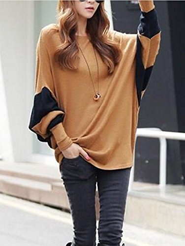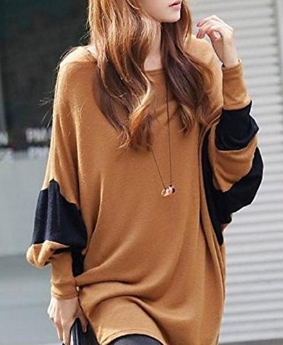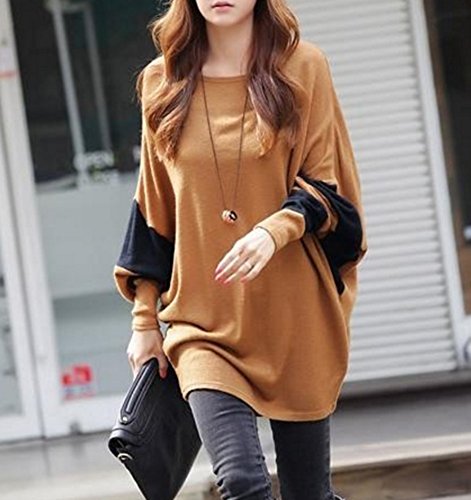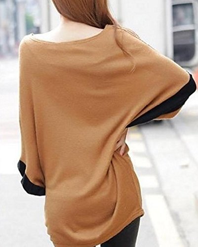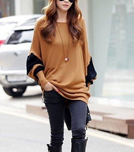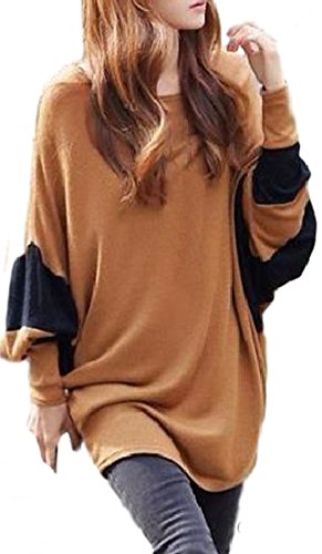 O’z star ドルマン スリーブ カットソー ブラウン × ブラック 長袖 レディース Tシャツ トップス (ブラウン×ブラック)