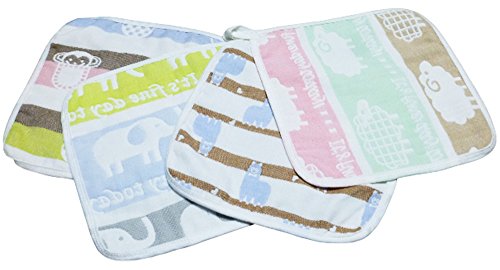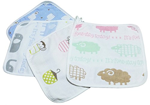 - かわいい アニマル 柄の6層ガーゼの ガーゼタオル 4枚セットです。 男の子 女の子 ともお使いいただけます。
