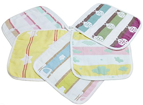 O’z star ガーゼ ハンカチ セット 綿 6重 厚手 ベビー 子供 コットン タオル ループ付 (5枚セット C)