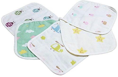 - かわいい アニマル 星 ヘリコプター リンゴ 柄 などの6層ガーゼ5枚セットです。サイズ:約25cm×25cm カラフル でやさしい色味で 男の子 女の子 ともお使いいただけます。