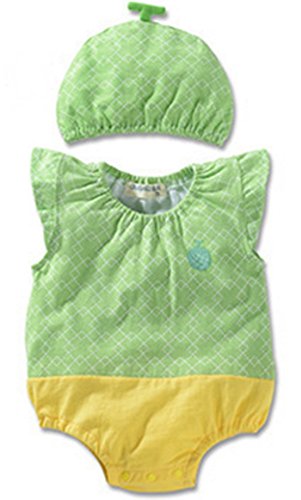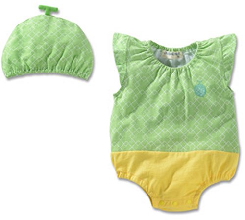 O’z star ロンパース 帽子 セット ノースリーブ 男の子 女の子 80 90 95 cm ベビー キッズ 服 カバーオール 子供 衣装 (90, メロン)