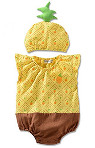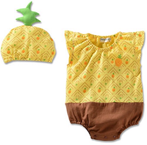 O’z star ロンパース 帽子 セット ノースリーブ 男の子 女の子 80 90 95 cm ベビー キッズ 服 カバーオール 子供 衣装 (80, パイナップル)
