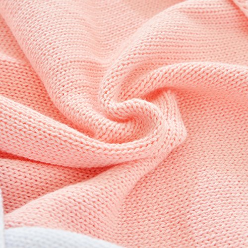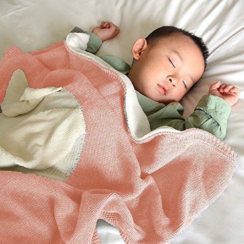 NEWSHONE フワフワ お肌に優しい 子供ブランケット 肩掛け 綿天竺ニット編み コットン毛布 掛け布団 ベビータオルケット デリケートな赤ちゃんにも安心 (ピンク 兎)