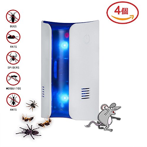 【4個入り】 ネズミ駆除 超音波 電磁波 2018強化版 超音波害虫駆除機 360°シャットアウト 電磁波+2種類超音波 ネズミやゴキブリ害虫に有効・全米大ヒット 子供やペットにも安心 ねずみ退治 ねずみ対策器