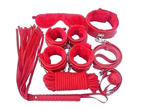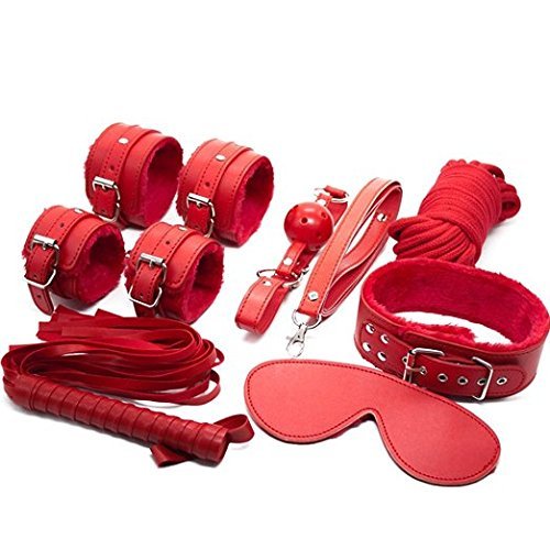 Weest 拘束具 おもちゃ ベッド 縛る 縛り姫 コスプレ 大人のおもちゃ 女性用 セックス ツール グッズ フェチ カップル 首輪 手錠 足枷 鞭 ギャグボール アイマスク フェザーロープ ソフトタイプ ベッドの拘束システム ボンデージ キット 7点セット 赤い [アダルト] (レッド) [成人]
