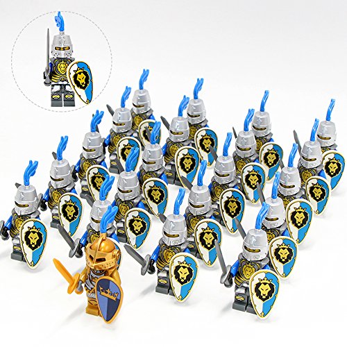 Bチーム21点ブルーライオンライトArmourの中世城Armor Knight in Ancient Rome with WeaponsミニフィギュアMilitaryブロックレンガ教育おもちゃ