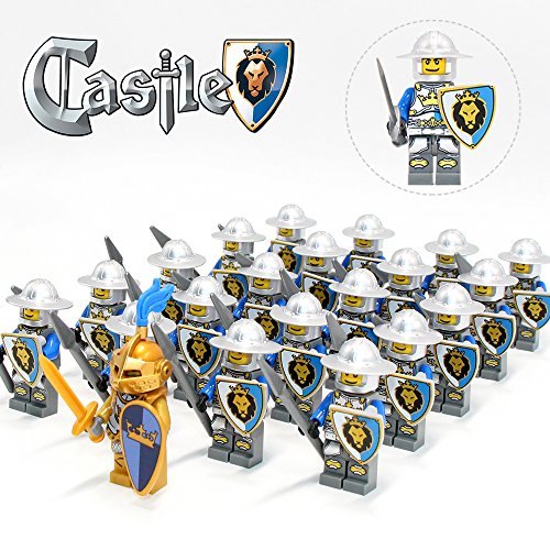Cチーム21点ブルーライオンが国Medieval Castle Pikeman Armor Knight in Ancient Rome with WeaponsミニフィギュアMilitaryブロックレンガ教育おもちゃ
