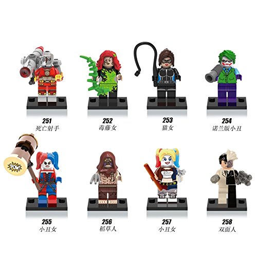 8pcs / lot DCバットマンの敵Deadshot、ポイズンアイビー、キャットウーマン、ジョーカーHarley Quinn , Scarecrow、トゥーフェイスアクションミニフィギュアBlocksおもちゃ
