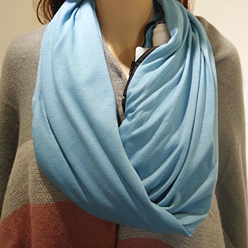 - ソリッドインフィニティソフトポリエステルスカーフ、隠しジッパーポケット付き インフィニティ・スカーフは幅9インチ、幅72インチの円周