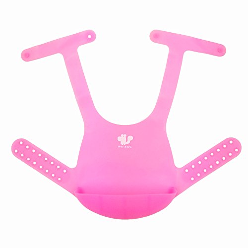 首に巻かない肩掛けタイプ 超柔らかい防水シリコーンよだれかけビブ ポケット付き 6か月頃から 男女兼用 ピンク