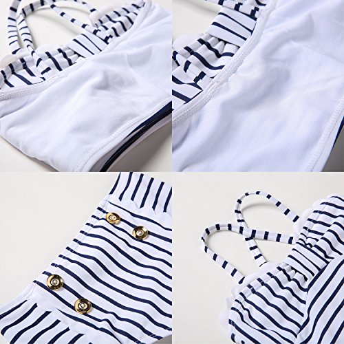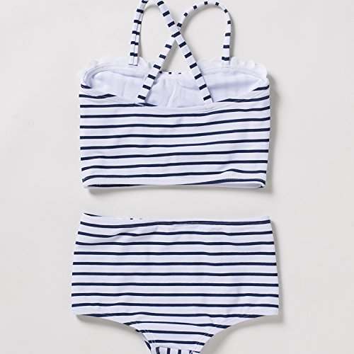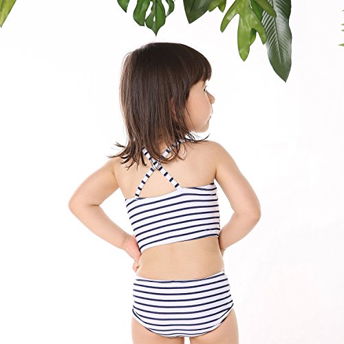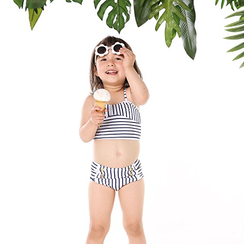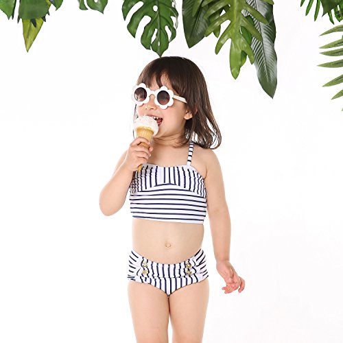 BABY ONE™ (ベビーワン)キッズ水着ワンピースハイウエスト ショートパンツ2点セット ボーダー柄 (90cm, ネイビー)