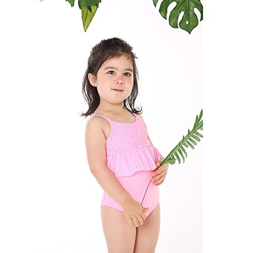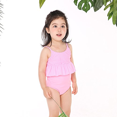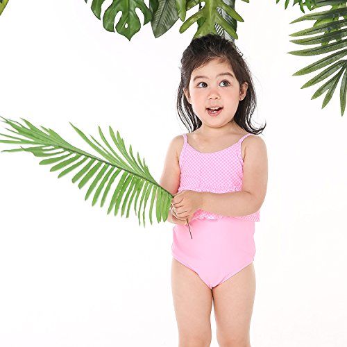 ONEBABY キッズ水着ワンピース オールインワン 一体型スイムウェア 連体水着 女の子水着 夏新作 可愛い 速乾 紫外線カット (100#, ピンク)