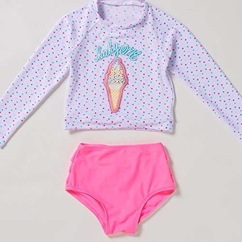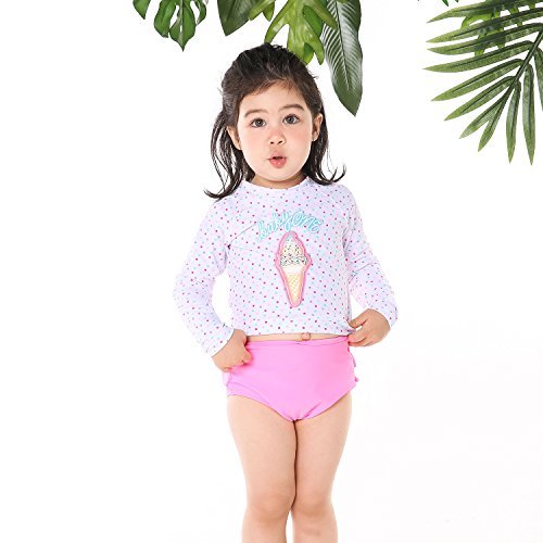 ONEBABY キッズ水着 長袖 ショートパンツ2点セット アイスクリーム柄 夏新作 女の子 可愛い 速乾 紫外線カット (120#)