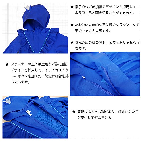 - 【特徴】★ 通気性がよい、PVCコーティングではなくて通気性のあるPUコーティングだし、左右腋下にはベンチレーション付きでだし通気性が最高; ★ 帽子内蔵可調節の縄、帽子の大小に対して有効に調節して、子供たちの顔にいっそう合う、雨が首に入らない。