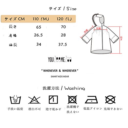 - 【特徴】★ 通気性がよい、PVCコーティングではなくて通気性のあるPUコーティングだし、左右腋下にはベンチレーション付きでだし通気性が最高; ★ 帽子内蔵可調節の縄、帽子の大小に対して有効に調節して、子供たちの顔にいっそう合う、雨が首に入らない。