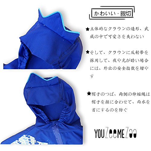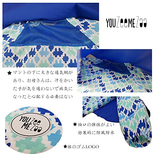 - 【特徴】★ 通気性がよい。マントの後ろは通気網があり、左右腋下にもベンチレーション付き、PVCコーティングではなくて通気性のあるPUコーティングだし、だから通気性が最高; ★ 帽子内蔵可調節の縄、帽子の大小に対して有効に調節して、子供たちの顔にいっそう合う、雨が首に入らない。